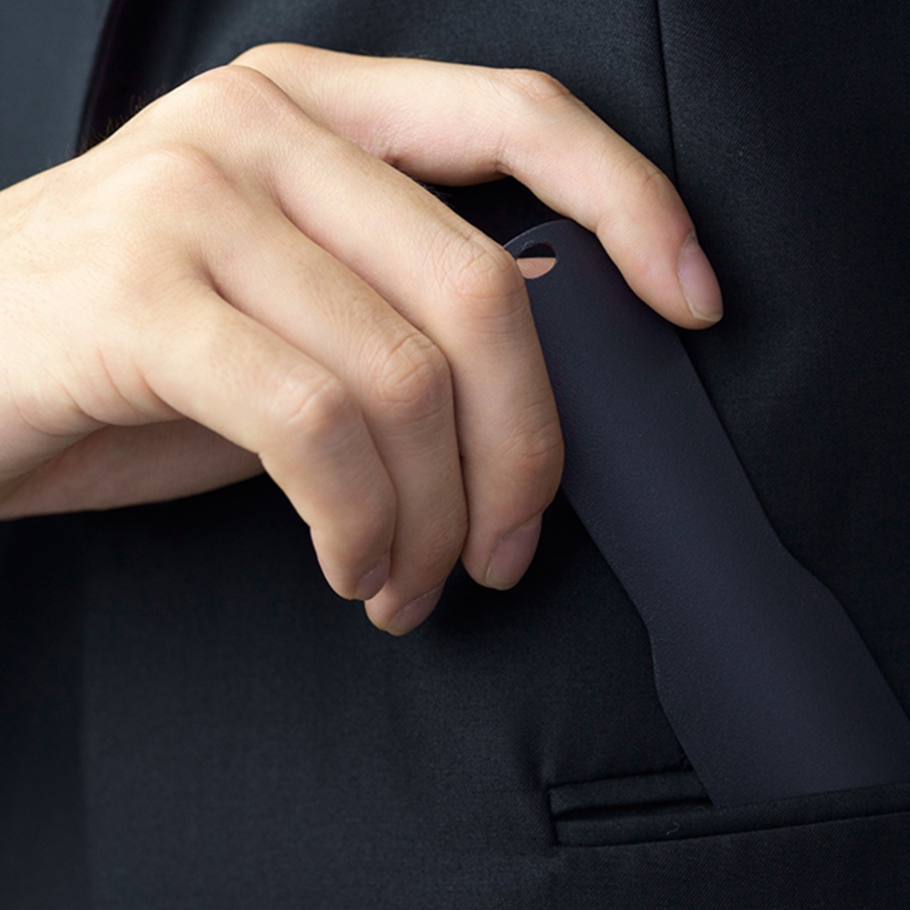 平面的なためポケットや鞄に忍ばせやすく、持ち手があることにより、握りやすくなっています。